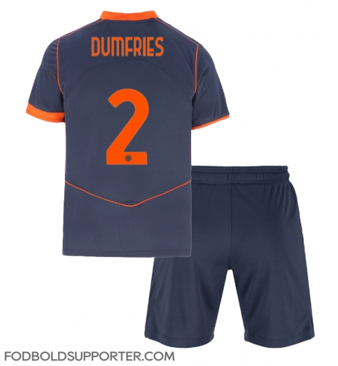 Billige Inter Milan Denzel Dumfries #2 Udebanetrøje Børn 2025-26 Kort ærmer (+ bukser)